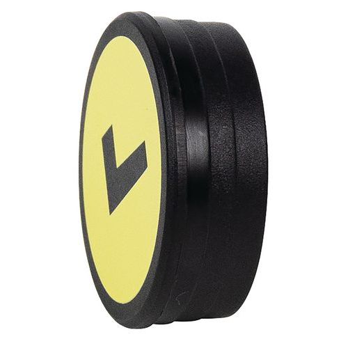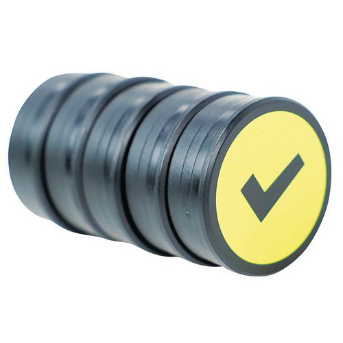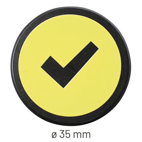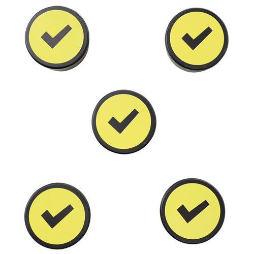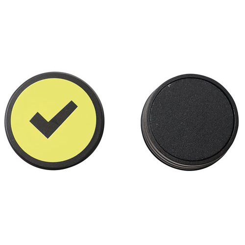 - Kulatý magnet se symbolem háčku nebo fajfky, znázorňující např. správné řešení nebo splněný úkol.