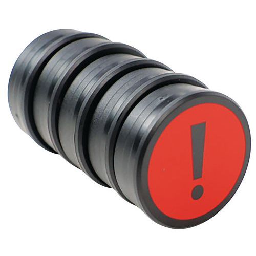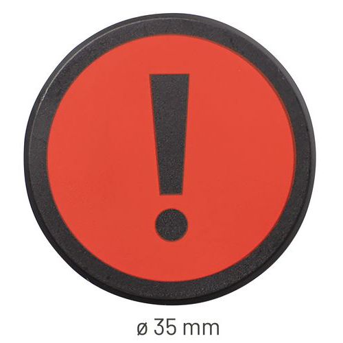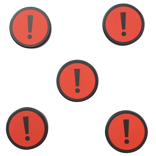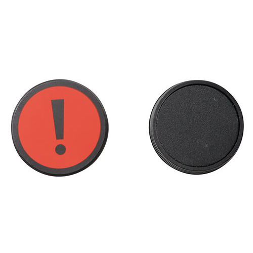 - Kulatý magnet se symbolem vykřičníku pro označení důležitých dokumentů a informací na magnetické tabuli.
