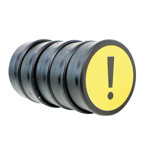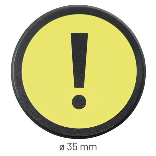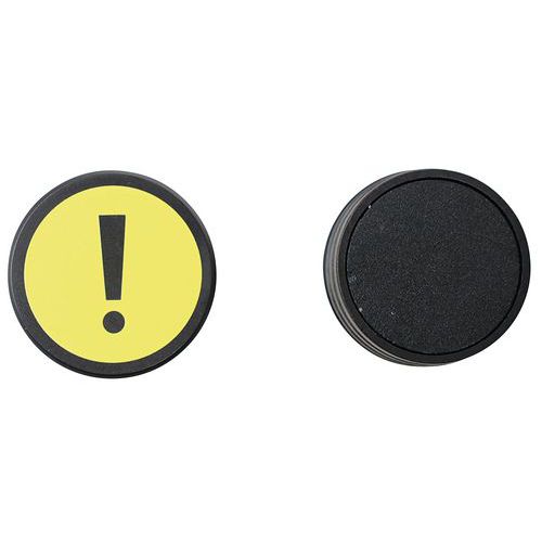 - Kulatý magnet se symbolem vykřičníku pro označení důležitých dokumentů a informací na magnetické tabuli.