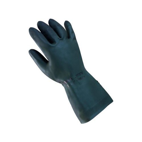 Delší pracovní rukavice ze směsi latexu a neoprenu s vnitřní velurovou úpravou.