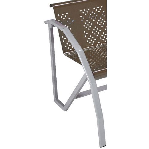 - Kovová sedadla z perforovaného plechu v různých barvách.