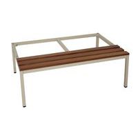 - Lavice s ocelovou konstrukcí a dřevěnou sedací plochou se umisťují pod kovové šatní skříně.