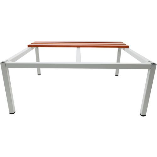 - Lavičky pod kovové šatní skříně vyrobené z ocelových profilů se sedací plochou z bukového dřeva.