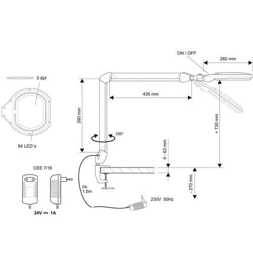 | Název produktu | LED laboratorní lampa Maul s lupou, 17 W |