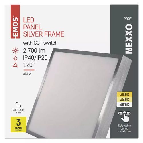 LED přisazené svítidlo NEXXO, čtvercové, stříbrné, 28,5W, se změnou CCT
