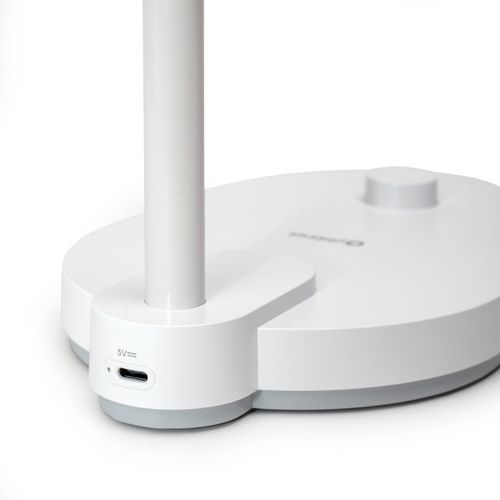 Lampa Luna s moderním bílým designem se hodí jak na pracovní stůl, tak do ložnice nebo obývacího pokoje.