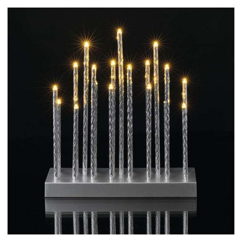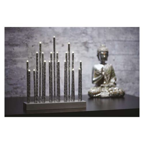 LED svícen stříbrný, 28,5 cm, 3xAA, vnitřní, teplá bílá, časovač