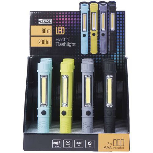 | Název produktu | LED svítilna plastová, 3W COB LED + 1x LED, na 3x AAA, 16 ks |