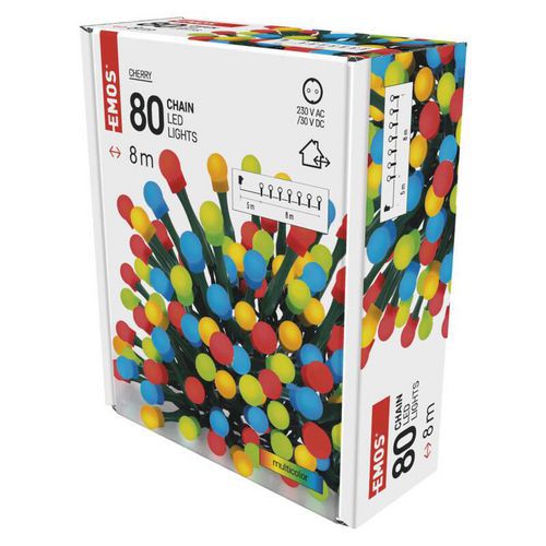 LED vánoční cherry řetěz - kuličky, 8 m, venkovní i vnitřní, multicolor, časovač