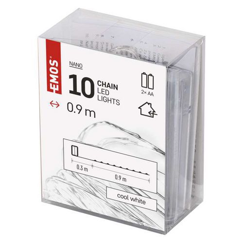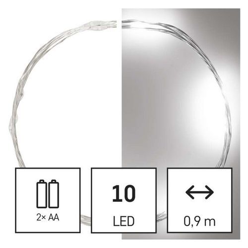 LED vánoční nano řetěz stříbrný, 0,9 m, 2xAA, vnitřní, studená bílá, časovač