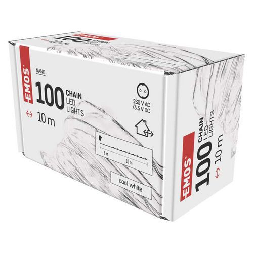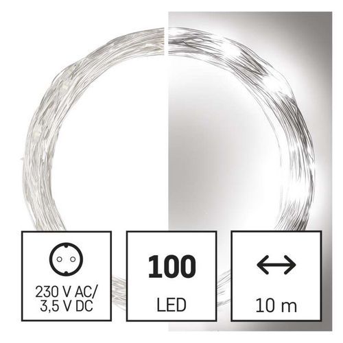 LED vánoční nano řetěz stříbrný, 10 m, venkovní i vnitřní, studená bílá, časovač
