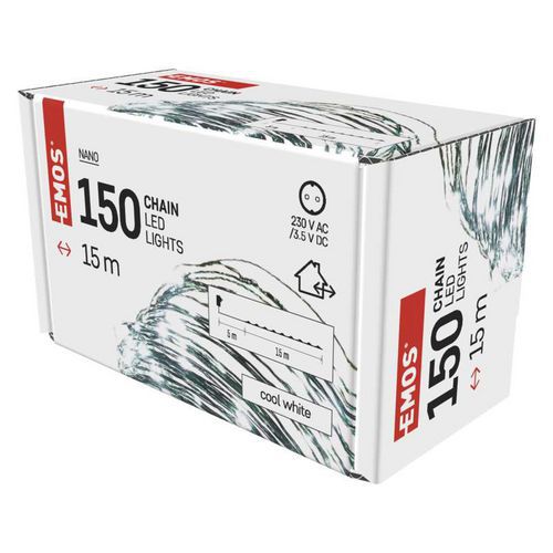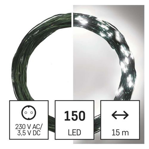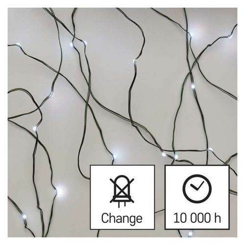 LED vánoční nano řetěz zelený, 15 m, venkovní i vnitřní, studená bílá, časovač