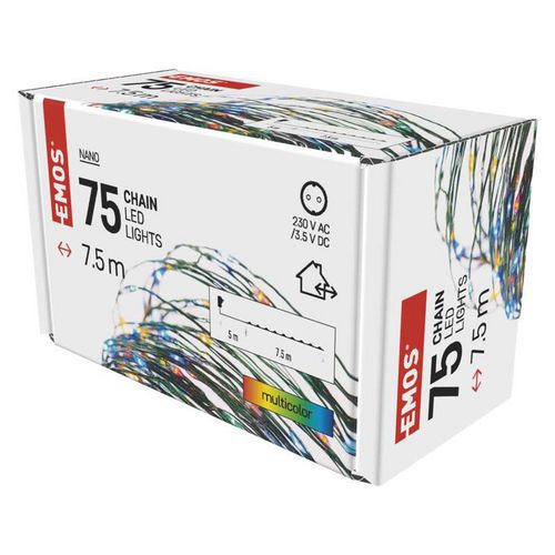 LED vánoční nano řetěz zelený, 7,5 m, venkovní i vnitřní, multicolor, časovač