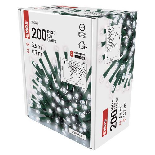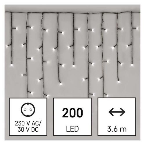 LED vánoční rampouchy, 3,6 m, venkovní i vnitřní, studená bílá, programy