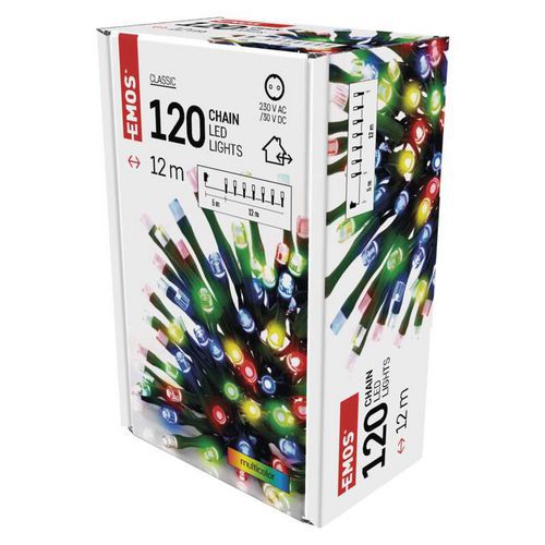 LED vánoční řetěz, 12 m, venkovní i vnitřní, multicolor, časovač