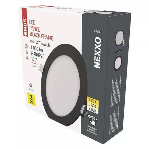 LED vestavné svítidlo Emos NEXXO, kruhové, 12,5 W, se změnou CCT, černé