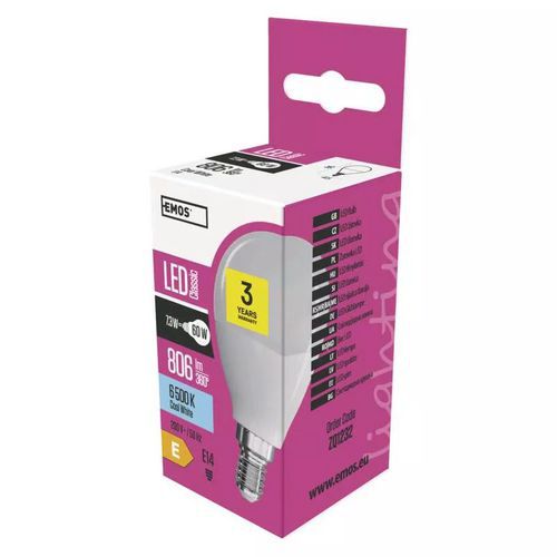 | Název produktu | LED žárovka Emos Classic Mini Globe, 7,3 W, E14, teplá bílá |