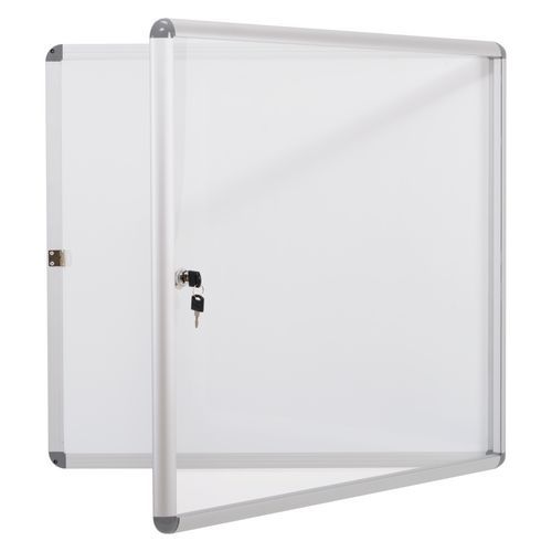 - Hliníkový rám s plastovými rohy, bílá lakovaná kovová tabule a akrylové sklo.