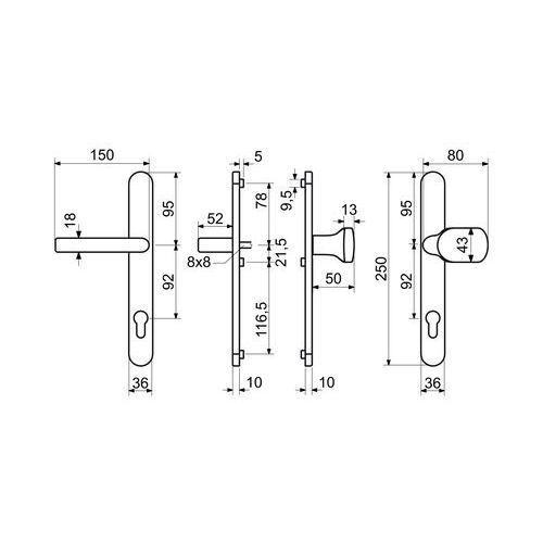 Masivní hliníkové kování pro vstupní dveře, práškový antracit