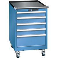 Mobilní dílenská zásuvková skříň Lista, 5 zásuvek: 4x100mm + 1x200mm, modrá