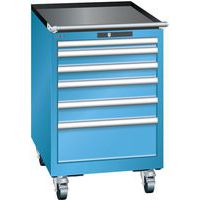 Mobilní dílenská zásuvková skříň Lista, 6 zásuvek: 1x50mm + 2x75mm + 2x100mm + 1x200, světle modrá