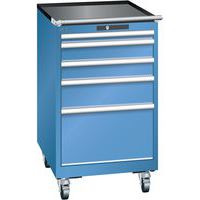 Mobilní dílenská zásuvková skříň LISTA, 5 zásuvek = 1x50 + 2x100 + 1x150 + 1x300mm, 564x725x990mm, modrá