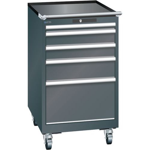 Mobilní dílenská zásuvková skříň LISTA, 5 zásuvek = 1x50 + 2x100 + 1x150 + 1x300mm, 564x725x990mm, černá