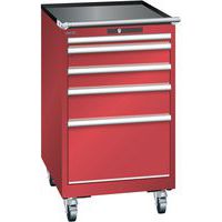 Mobilní dílenská zásuvková skříň LISTA, 5 zásuvek = 1x50 + 2x100 + 1x150 + 1x300mm, 564x725x990mm, červená