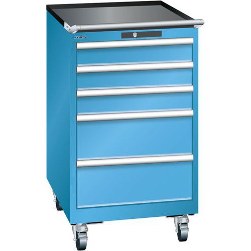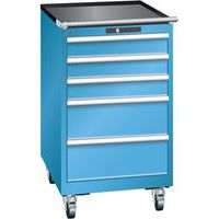 Mobilní dílenská zásuvková skříň LISTA, 5 zásuvek = 3x100 + 2x200mm, 564x725x990mm, světle modrá