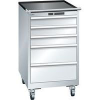 Mobilní dílenská zásuvková skříň LISTA, 5 zásuvek = 3x100 + 2x200mm, 564x725x990mm, šedá