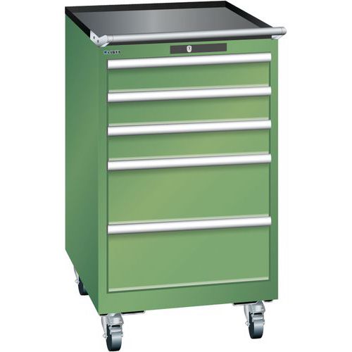 Mobilní dílenská zásuvková skříň LISTA, 5 zásuvek = 3x100 + 2x200mm, 564x725x990mm, zelená