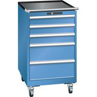 Mobilní dílenská zásuvková skříň LISTA, 5 zásuvek = 3x100 + 2x200mm, 564x725x990mm, modrá