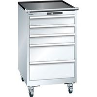 Mobilní dílenská zásuvková skříň LISTA, 5 zásuvek = 3x100 + 2x200mm, 564x725x990mm, bílá
