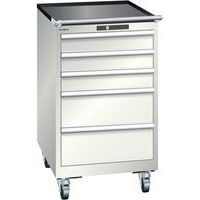 Mobilní dílenská zásuvková skříň LISTA, 5 zásuvek = 3x100 + 2x200mm, 564x725x990mm, světle šedá