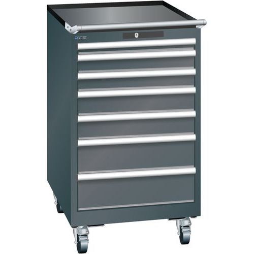Mobilní dílenská zásuvková skříň LISTA, 7 zásuvek = 1x50 + 2x75 + 2x100 + 2x150mm, 564x725x990mm, černá