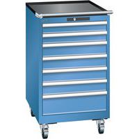 Mobilní dílenská zásuvková skříň LISTA, 7 zásuvek = 2x75 + 4x100 + 1x150mm, 564x725x990mm, modrá