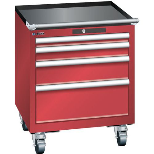 Mobilní dílenská zásuvková skříň LISTA, 411x725x723 mm, 4 zásuvky, červená