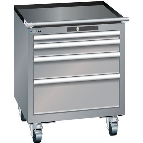 Mobilní dílenská zásuvková skříň LISTA, 411x725x723 mm, 4 zásuvky, šedá/sříbrná