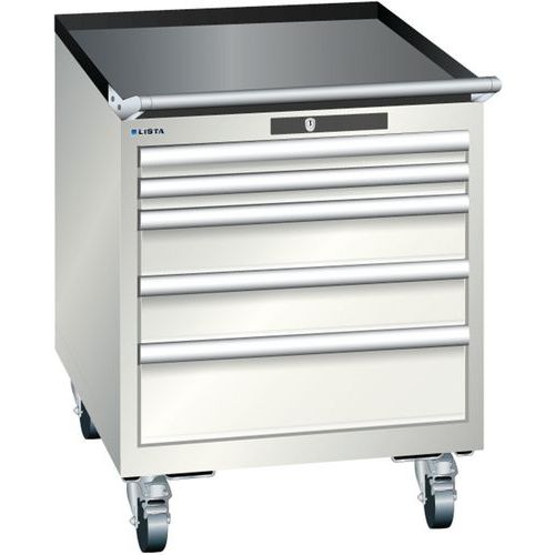 Mobilní dílenská zásuvková skříň LISTA, 564x725x723mm, 5 zásuvek, světle šedá