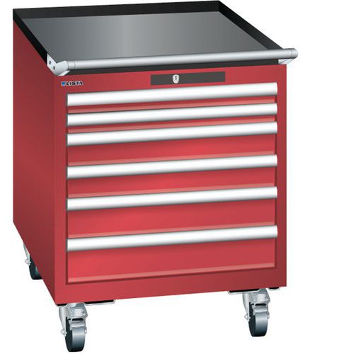 Mobilní dílenská zásuvková skříň LISTA, 564x725x723mm, 6 zásuvek, červená
