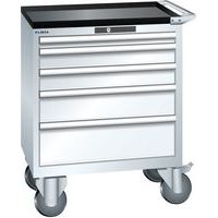 Mobilní dílenská zásuvková skříň LISTA, 5 zásuvek = 1x50 + 2x100 + 1x150 + 1x200mm, 717x572x962mm, bílá