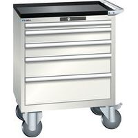 Mobilní dílenská zásuvková skříň LISTA, 5 zásuvek = 1x50 + 2x100 + 1x150 + 1x200mm, 717x572x962mm, světle šedá