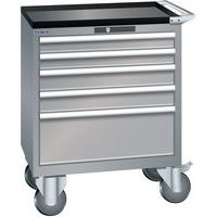 Mobilní dílenská zásuvková skříň LISTA, 5 zásuvek = 2x75 + 2x100 + 1x250mm, 717x572x962mm, šedá/stříbrná