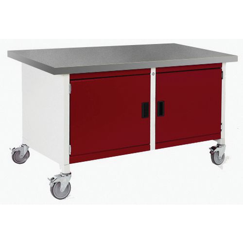 Mobilní dílenský stůl Bott Cubio Storage, 84 x 150 x 75 cm, 2 skříňky, linoleum, šedá-červená Mobilní dílenský stůl Bott Cubio Storage, 84 x 150 x 75 cm, 2 skříňky, linoleum, šedá-červená