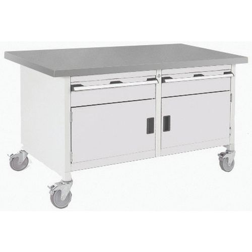 Mobilní dílenský stůl Bott Cubio Storage, 84 x 150 x 75 cm, 2 zásuvky, 2 skříňky, multiplex/linoleum