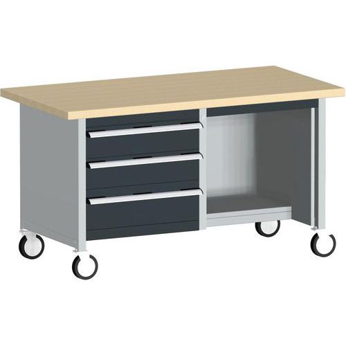 Mobilní dílenský stůl Bott Cubio Storage, 84 x 150 x 75 cm, 3 zásuvky, police, multiplex/linoleum