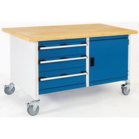 Mobilní dílenský stůl Bott Cubio Storage, 84 x 150 x 75 cm, 3 zásuvky, skříňka, multiplex/linoleum