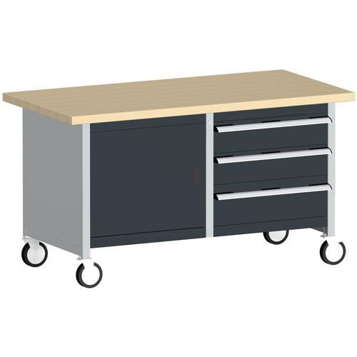 Mobilní dílenský stůl Bott Cubio Storage, 84 x 150 x 75 cm, 3 zásuvky, skříňka, multiplex/linoleum