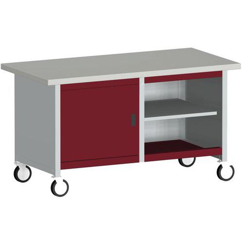Mobilní dílenský stůl Bott Cubio Storage, 84 x 150 x 75 cm, skříňka, otevřený prostor s policí, linoleum Mobilní dílenský stůl Bott Cubio Storage, 84 x 150 x 75 cm, skříňka, otevřený prostor s policí, linoleum
