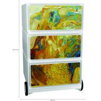 Mobilní designové kontejnery se čtyřmi zásuvkami pro ukládání kancelářských pomůcek. Přední plocha zásuvek z ABS plastu s foto vzorem. Pojízdnost zajišťují 4 kolečka, z nichž dvě jsou otočná. Užitné rozměry zásuvky jsou 32,5 x 13,3 x 40,5 cm. Záruka výrobce pro zákazníka : 10 let